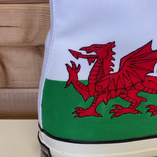 Welsh Flag High Top Converse are a great choice for patriotic gifts, birthdays, holidays or special occasions. Combining craftsmanship, comfort and national spirit, they’re a one-of-a-kind way to wear your heritage with pride.